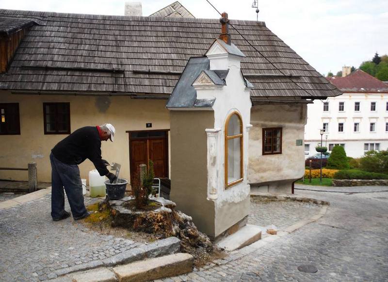 Kaplička ve Steinbrenerově ulici ve Vimperku dostává v těchto dnech novou fasádu. Oprava drobné sakrální památky započala v loňském roce a byla vyvolána neustále se zvětšujícím náklonem kapličky do ulice. „Provedený statický průzkum potvrdil, že příčinou zaznamenané nestability objektu je vyhnívající a usychající kořenový systém poraženého kaštanu, který rostl v těsné blízkosti kapličky a jehož kořeny prorostly jejími základy,“ vysvětluje Alena Szabová z odboru investic a údržby MÚ Vimperk. Jediným možným způsobem záchrany naklánějící se kapličky bylo vybudování jejího nového základu. Poněkud netypické řešení pak spočívalo v tom, že kaplička nebyla rozebrána a následně zpětně vystavěna, ale že její nadzemní část byla obepnuta, oddělena od původního základu a za pomoci jeřábu dočasně odstavena ze svého stanoviště. V návaznosti na to pak mohl být pro kapličku vybudován nový základ bez potřeby její demolice a následně byla kaplička bez jakékoliv větší újmy usazena zpět na své původní místo. Vzhledem ke klimatickým podmínkám byla potom související oprava omítky kapličky odložena na letošní rok. Na opravu omítky ještě naváže její nátěr a kaplička se opět stane jednou z ozdob Městské památkové zóny ve Vimperku.
