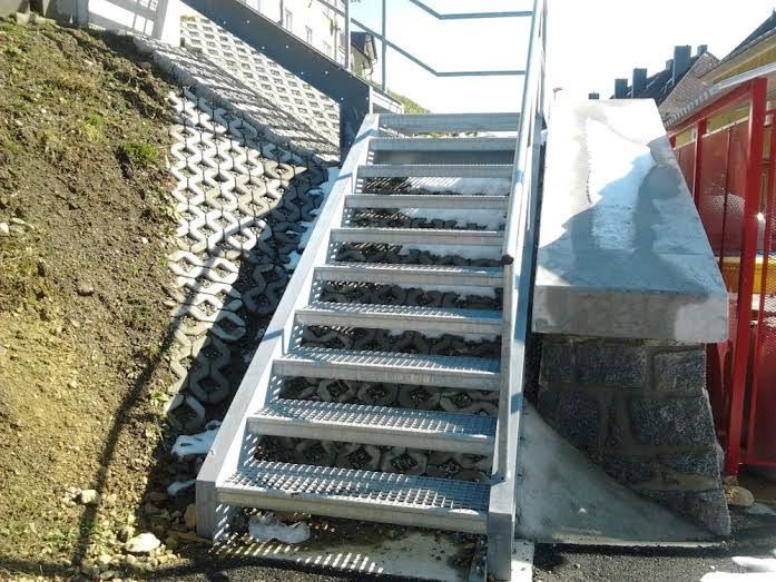 Předmětné schodiště bylo navrženo a realizováno dle platných norem a předpisů v době jeho výstavby, zábradlí v dolní části z jedné strany by mělo být dostačující. Srovnáme-li stávající stav s původním schodištěm a navazující vyšlapanou stezkou v zeleni, k zajištění bezpečnějšího zpřístupnění došlo.