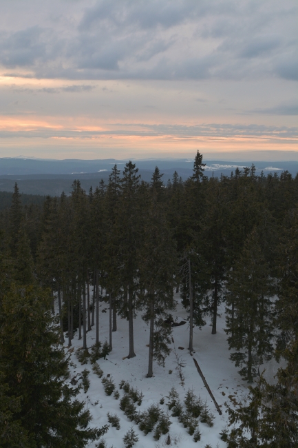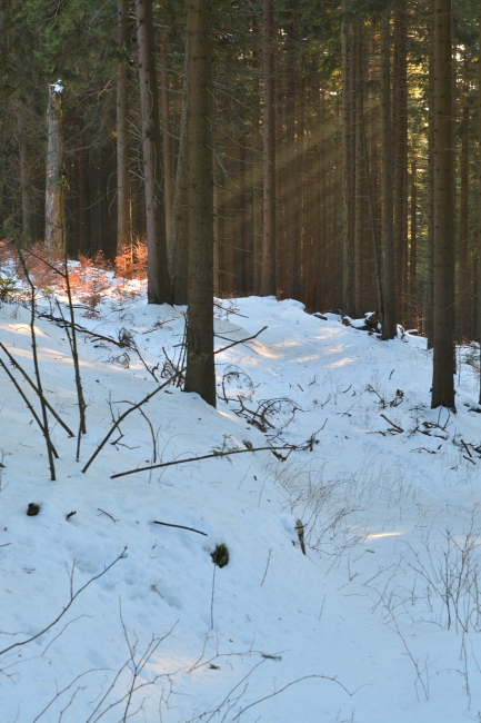 Pozdní odpoledne se dokonce dočkalo protržení dosavadní fádní šedi na obloze a letmého symbolického přihlášení sluníčka. Vyplynula z toho jasná výzva k prozkoumání večerní situace na Boubíně, který byl mimochodem z Vimperka jednu chvíli k slušnému zahlédnutí. Po včerejší a ještě dnešní dopolední mlžné čepici to jistě lze považovat za úspěšnou změnu.