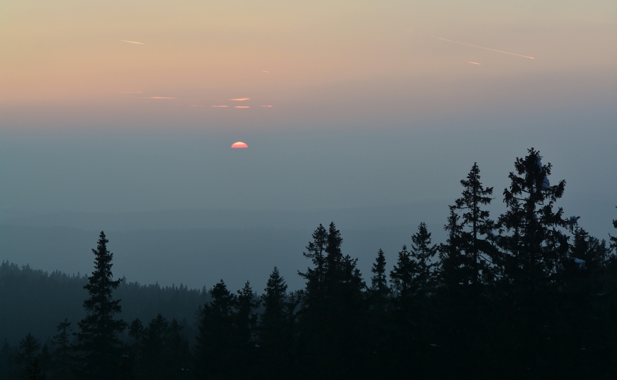 Chceme-li znát přesný čas nástupu jara, nemůžeme se držet zaběhlé tradice střídání ročních dob podle kalendáře, nýbrž se musíme svěřit do rukou astronomů. Ti nám letos praví, že astronomické jaro započne již zítra v 5:30 (poslední shoda s neměnnou kalendářní verzí, tedy 21. března, se mimochodem udála v roce 2011, kdežto ve všech následujících letech připadla jarní rovnodennost stejně jako letos na 20. březen). Dnešní svátek všech Pepíků tak byl současně posledním zimním dnem. Boubín jej přivítal zataženou oblohou, ale poměrně čistým okolím, neboť inverze poklesla, ustoupila do větší vzdálenosti a na východním obzoru dokonce ponechala zřetelně viditelnými Novohradské hory.
