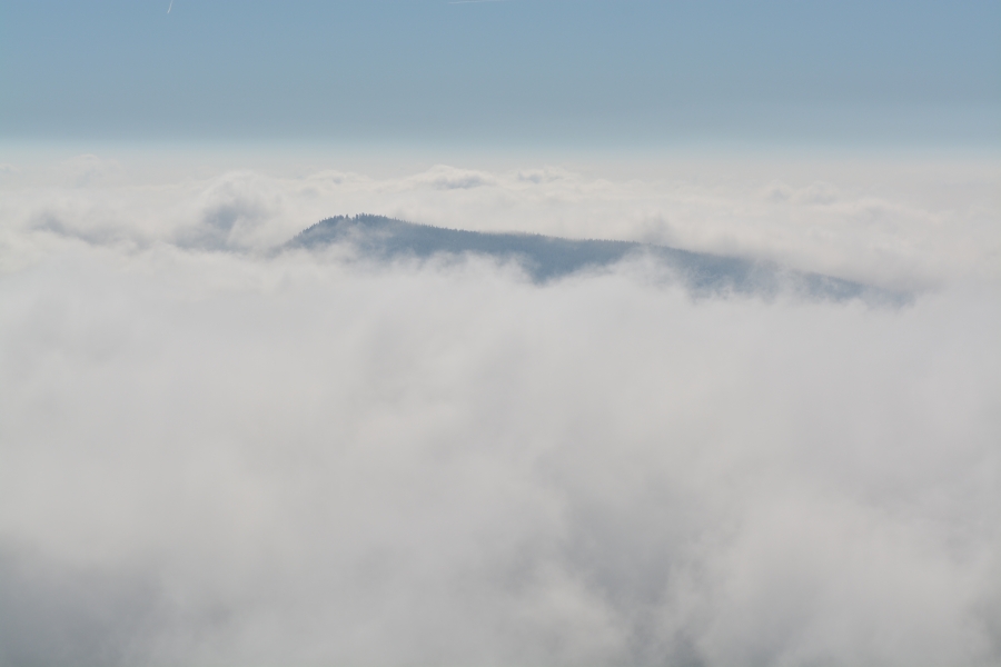 Ukázalo se, že mlha nakonec povolila své sevření hory jen lehce, ale přece jen natolik, aby se ze známých vyhlídek daly identifikovat aspoň náznaky či charakteristické obrysy okolní krajiny.