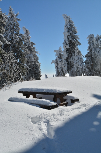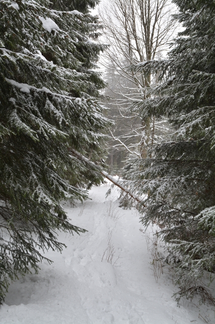 Čerstvým sněhem, jehož vydatnost v síle cca deseti nových centimetrů (dobrá, přiznejme meteorologům poloviční úspěch 🙂 ) byla zhruba do tří čtvrtin stoupání srovnatelná s vimperskou, dnes zatím zjevně nikdo na vrchol nešel.