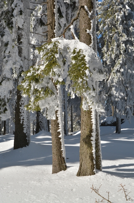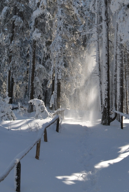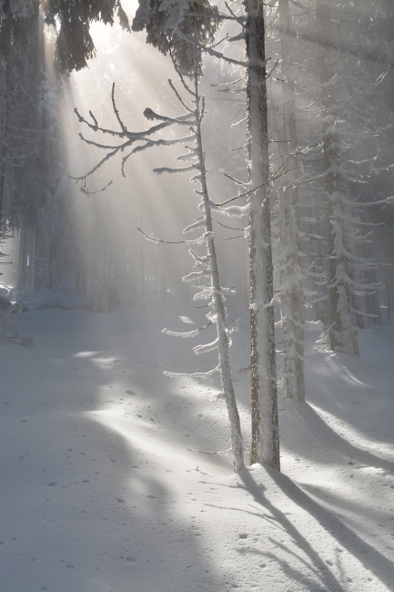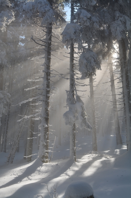 Nekonstatujeme zde společně poprvé, že za skalní baštu probíhající zimy lze široko daleko od Vimperka označit Boubín. Po vydatné bílé nadílce z pondělní noci už sice nezopakoval hodnoty svého relativně nedávného (jmenovitě lednového) sněhového maxima, ale je nutno uznat, že co tu naposledy napadlo, to stále bez sebemenších změn leží. Smrky se navíc stihly obalit zcela čerstvou námrazou, …