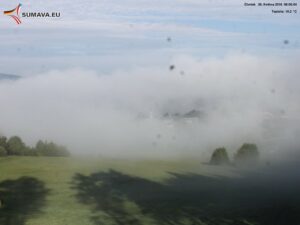 Šumavské hřebeny byly 14. června zahaleny v ranních a dopoledních hodinách do nízké oblačnosti. Díky tomu byla dohlednost snížena chvílemi i jen na 100 metrů.
