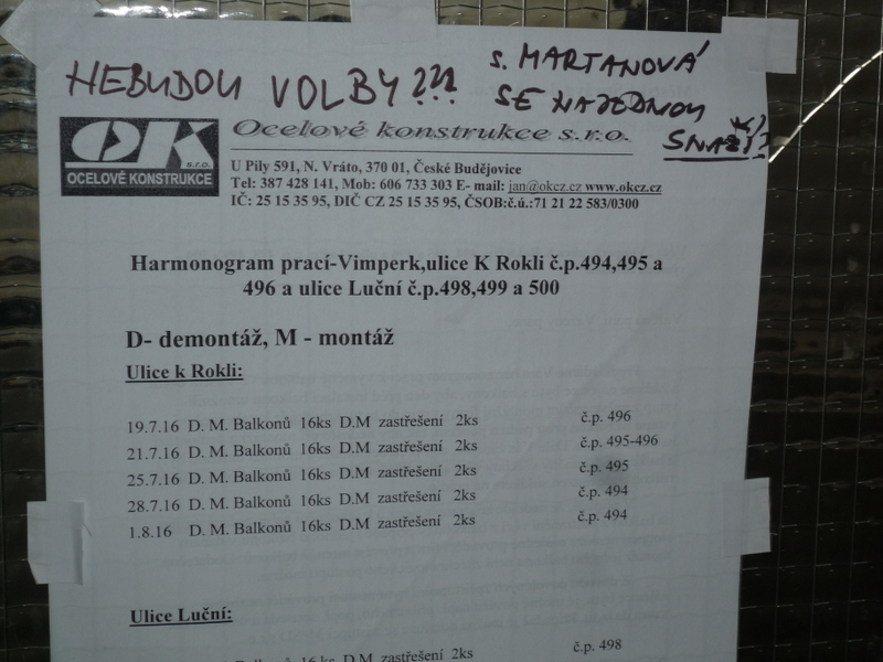 Jen na okraj chci poznamenat, v loňském roce při výměně oken v ulicích K Rokli a Luční bylo při setkání s nájemníky řečeno jednatelem MěSD, že po oknech přijdou na řadu balkony. Během dvou let dojde k jejich výměně. Termín by zkrácen o polovinu. Žádné volby vám balkony nevymění, pouze včas připravené finanční prostředky určují správný termín opravy.