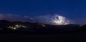 Včerejší večer byl v režii letních bouřek. Fotografie z Vimperska nám zaslal O. Doležal. Podařilo se mu zachytit i přímý zásah Boubína.