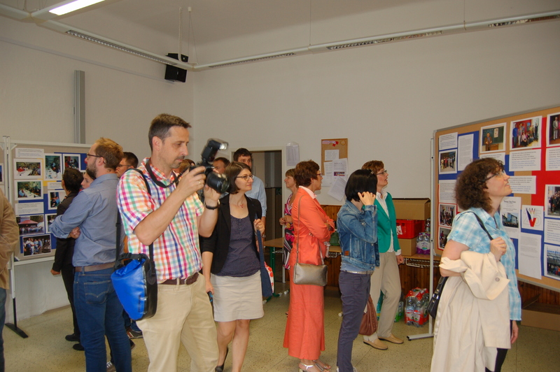 Foto 1-3: Kolegové z obou škol si se zájmem prohlédli výstavu k výročí spolupráce. Foto: Ing. Milan Vančura