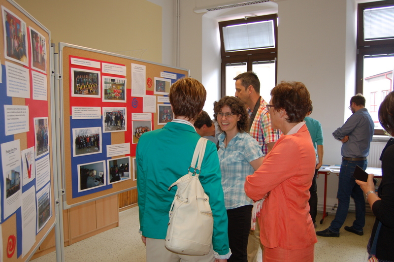 Hosté si mohli v úvodu prohlédnout učebny vimperského gymnázia a zavzpomínat u výstavy, která připomněla řadu společných aktivit v uplynulých letech, poté následovaly pozdravné projevy. Další bodem programu bylo představení prezentací vytvořených právě u příležitosti tohoto setkání. Studenti 2. a 3. ročníku vimperského gymnázia představili bavorským hostům obrazem i zvukem město Vimperk a krátký film o škole, který sami vytvořili. Ředitelka Gymnázia ve Waldkirchenu, paní Josefa Stamm, představila společně se svou zástupkyní, paní Ingrid Amann, waldkirchenské gymnázium.