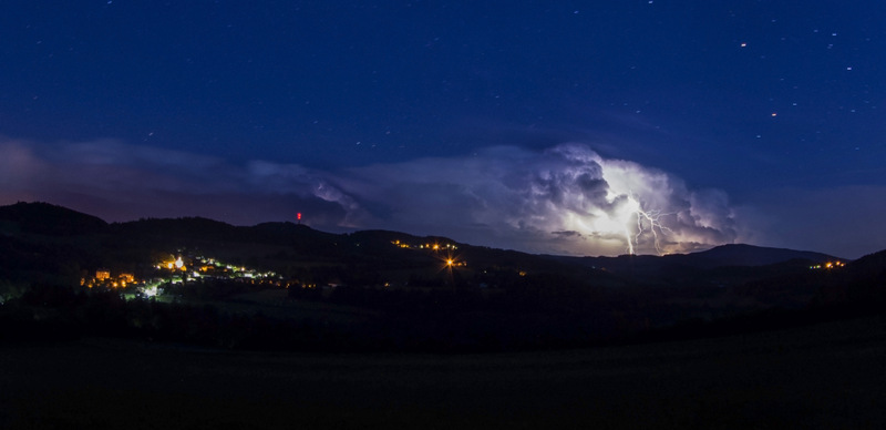 Podařilo se mu zachytit i přímý zásah Boubína.