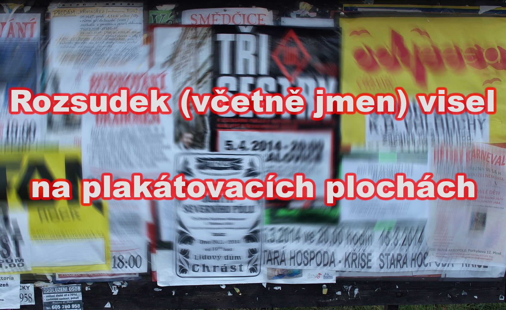 HORAŽĎOVICE – Pachatel na plakátovacích plochách zveřejnil rozsudek soudu i s osobními údaji osob.