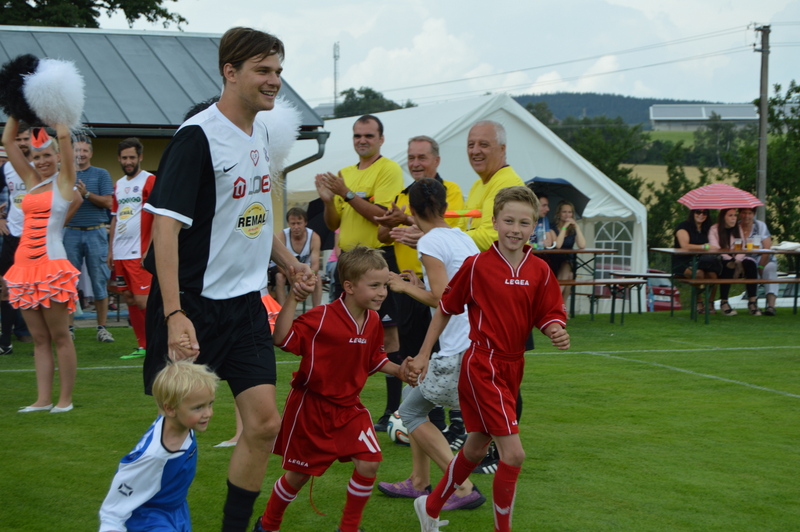 Ale pěkně popořádku. Vojta Dyk, patron a nositel celé myšlenky vacovského fotbalohraní, byl ústřední postavou celého zápasu. Než hlavní rozhodčí Emil Hájek, kterému na lajnách asistovali Marek Mráz a Jaroslav Hodánek, zadul do píšťalky, proběhlo slavnostní předtančení vimperských mažoretek. Stejně jako ony natančili na skvěle připravený trávník hráči obou mužstev. Za znělky Ligy mistrů a s dětmi ruku v ruce proběhl klasický nástup, podání rukou a šlo se na to.