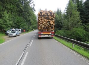 Z návěsu padaly klády – Kubova Huť Tragicky mohla skončit nehoda nákladního vozidla, jehož řidič se nevešel s návěsem pod most. Prachatičtí