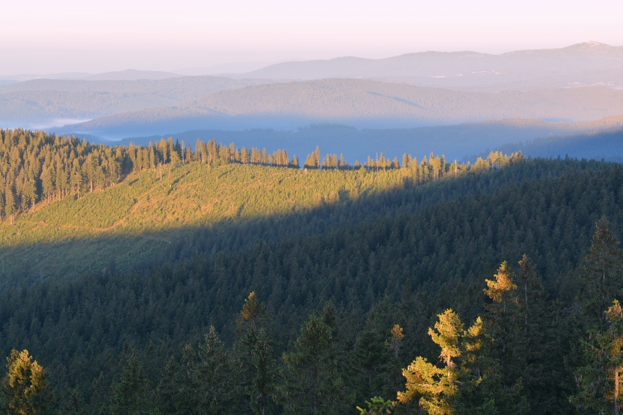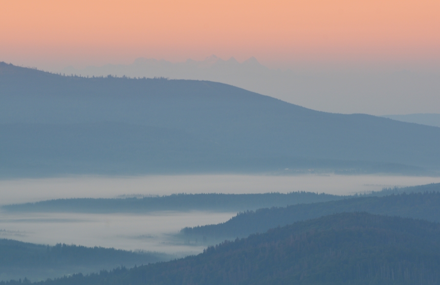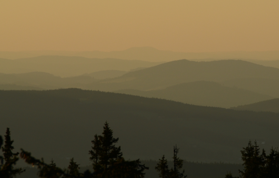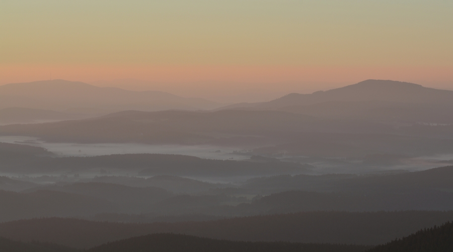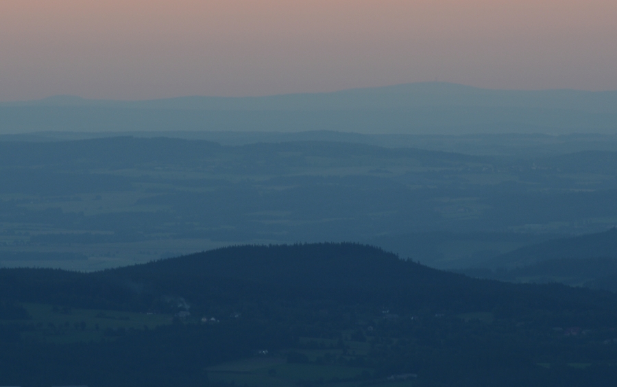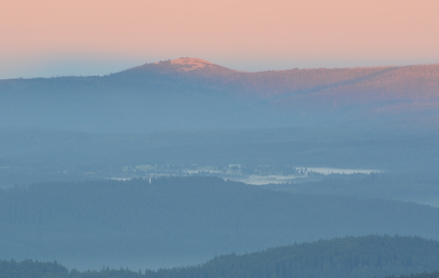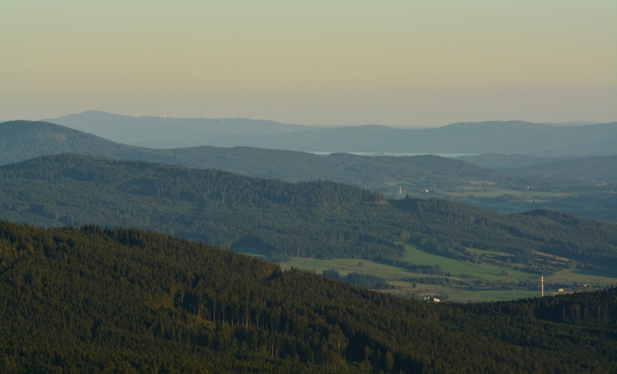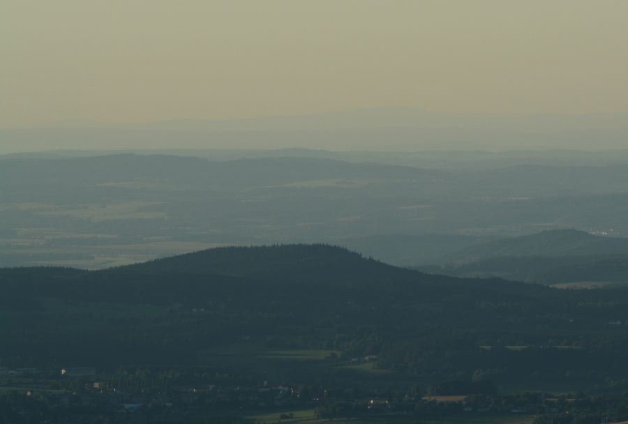 … stejně jako ten, který ještě východněji míří od Plechého dále ke Smrčině. Krom předpokladu, že ústup přímých slunečních paprsků by mohl znamenat celkové zvýraznění všeho viděného (druhou variantou bylo možné zhoustnutí oparu a tím pádem pro změnu zmizení všeho viděného) se logicky vnucovala otázka, co asi teleobjektiv vytáhne tam, …