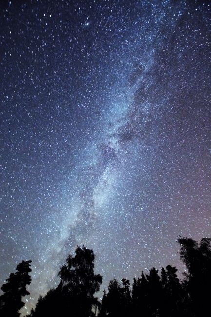 Teplé a jasné srpnové noci jsou ideálním časem k fotografování naší rodné galaxie – Mléčné dráhy. Je však zapotřebí hledat co možná ideální místo, kam by nezasahoval světelný smog. Vimperský, jak prozrazuje změna odstínu oblohy na pravé straně snímku, dosáhne až do Sklář.
