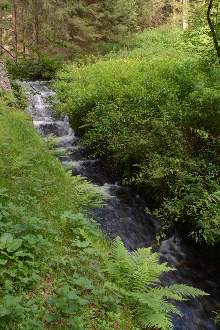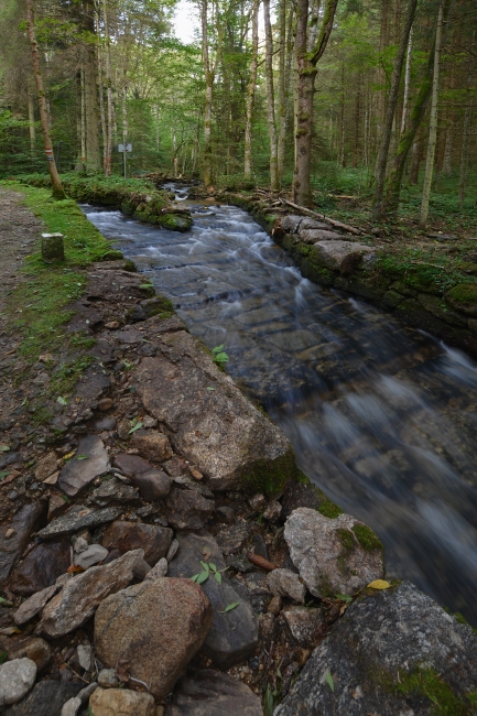 Ten zde tvoří přirozenou část česko-rakouské hranice. Dodnes se můžeme obdivovat pečlivé a jistě nelehké práci dávných řemeslníků a dělníků, kteří vyskládali dno obrovskými ručně štípanými kamennými deskami či plochými balvany a tímtéž přírodním materiálem, v současné době nesoucím půvabnou letitou mechovou patinu, zpevnili poté, co při povodních vzala zasvé původní dřevěná výztuž, též po celé délce oba břehy.