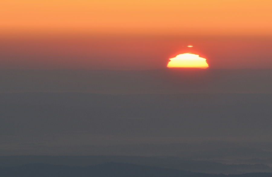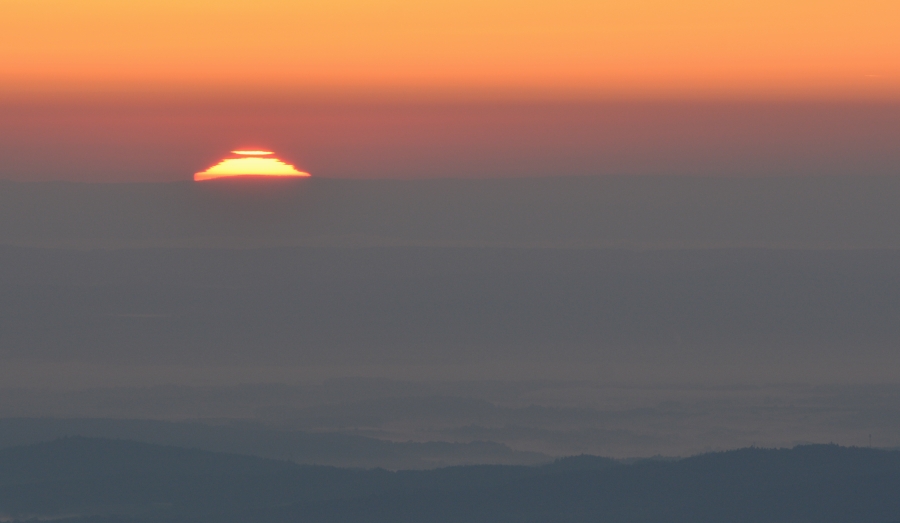 Zajímavou podívanou si přisadilo i vycházející sluníčko, jemuž struktura obzorového oparu umožnila …