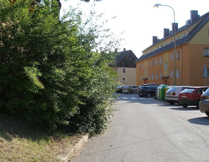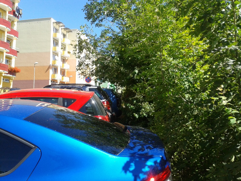 V ul. Palackého u pivnice Autoškola roste křoví do ulice a pokud je tam zaparkována nějaká dodávka, či delší auto, musí se doleva k obrubníku a na autě nějaký prach, na větvičkách a listí nějaký prach – a to jsou ty „čmouhy“ na blatníku. Viz dnešní foto !
