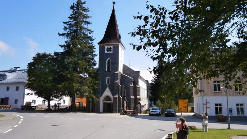 I na zastavení v obci Kvilda, kde účastníci zájezdu shlédli v Informačním centru krátký dokument o Horské Kvildě, prohlédli si expozice a poseděli poté v místní cukrárně a restauraci.