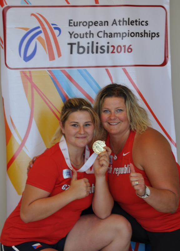 Kateřina Skypalová s trenérkou Lucií Plašilovou a se zlatou medailí pro mistryni Evropy