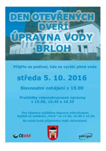 Den otevřených dveří v Úpravně vody Brloh Přijďte se podívat na místo, kde se vyrábí pitná voda pro Vimperk. Den otevřených dveří