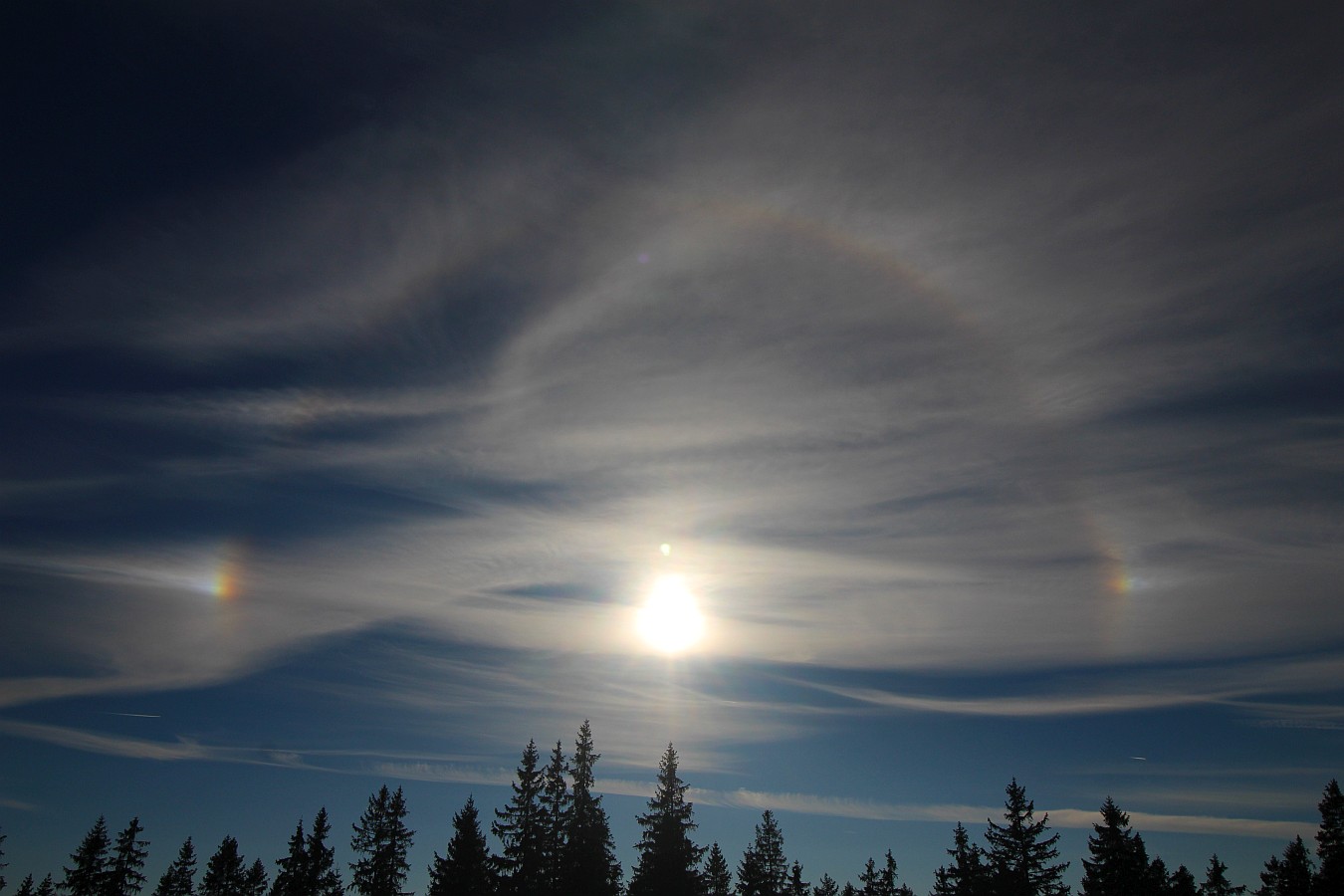 Nejkrásnější byl bohatě zbarvený cirkumzenitální oblouk v barvách duhy. Střídavě se objevovala 22°parhelia zprava i zleva a občas se ukázalo i malé haló.