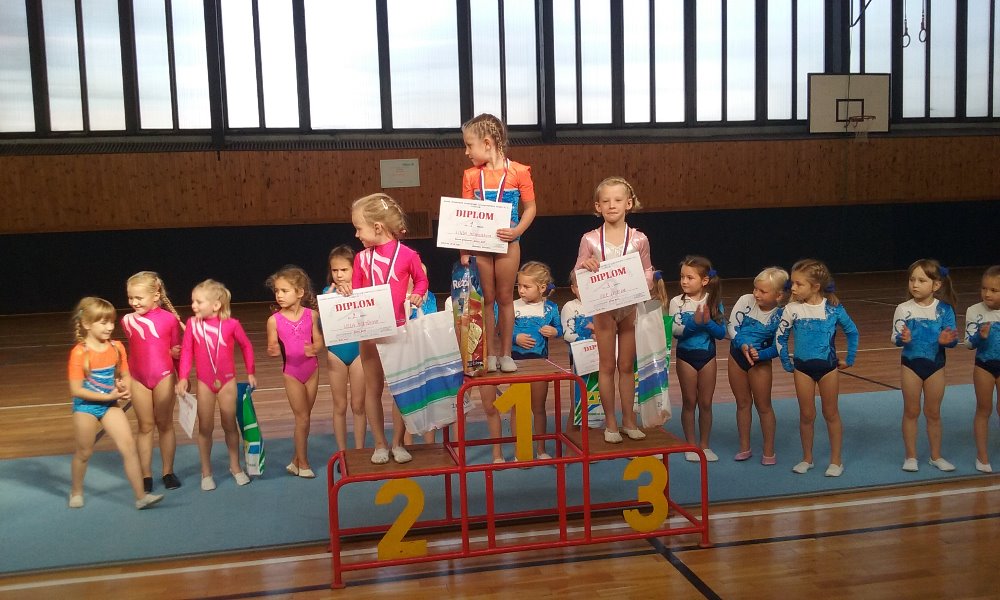 Holčičky se pilně připravovaly už od září, protože tyto závody se skládají kromě klasického čtyřboje (prostná, kladina, přeskok a hrazda) také z technických disciplín (šplh, vznosy na lavičce, skok z místa a skoky přes švihadlo) a vyplatilo se. Viktorka ve své kategorii získala druhé nejlepší ohodnocení na přeskoku, ve skoku z místa skočila dokonce nejdále ze všech, ale dařilo se jí i v ostatních disciplínách a nakonec vybojovala krásné 3. místo.