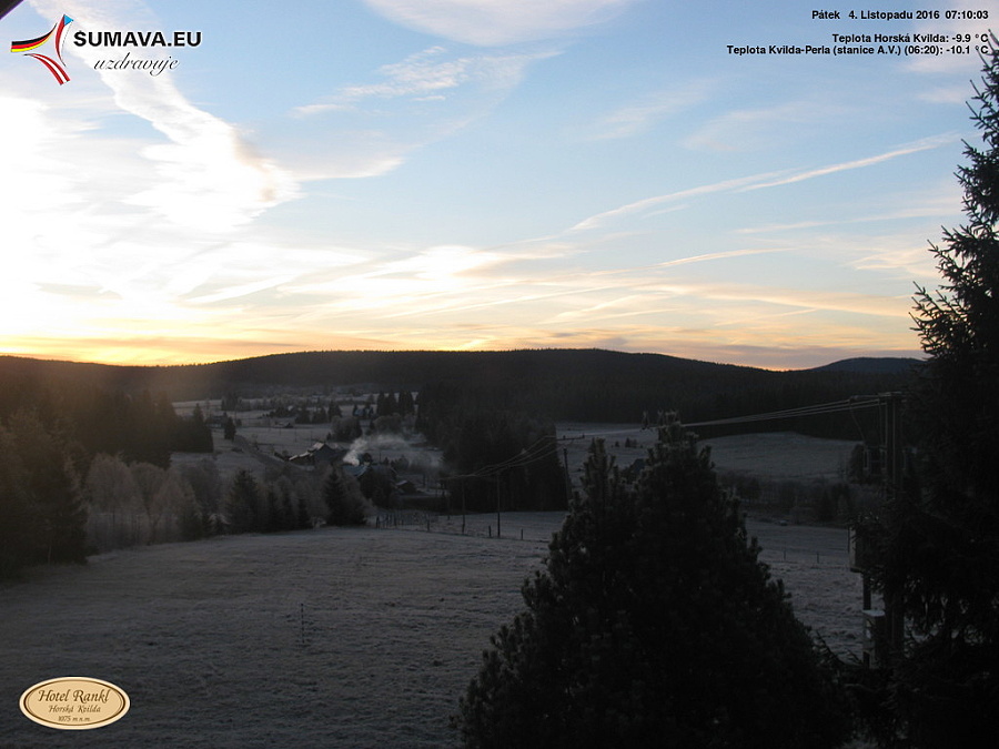 Páteční ráno 4. listopadu bylo zatím to nejchladnější od začátku podzimu. Nízkým teplotám nahrával nejen příliv studeného vzduchu, ale také minimum oblačnosti a utišení větru. Teplota na všech šumavských stanicích klesla pod bod mrazu.
