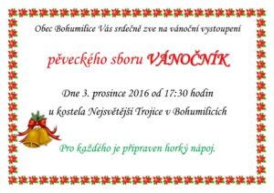 Obec Bohumilice zve všechny příznivce vánočních koled na vystoupení sboru Vánočník. {jcomments off}