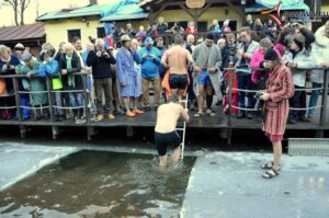Zimní otužování na Vodníku Na Vodníku bylo dnes opravdu rušno a zmrzle. Kdo si myslel, že při téměř jarním počasí bude Vodník bez ledu