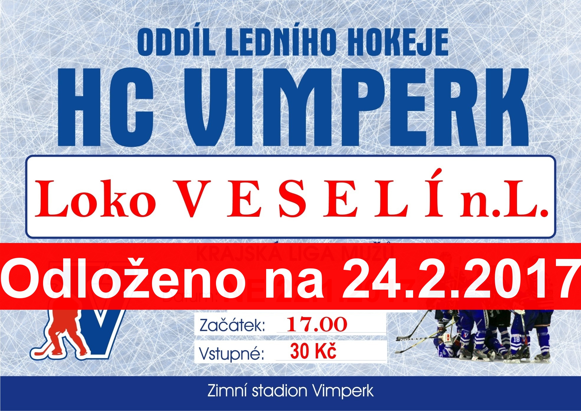 Nedělní utkání mužů proti Veselí nad Lužnicí bylo odloženo pro