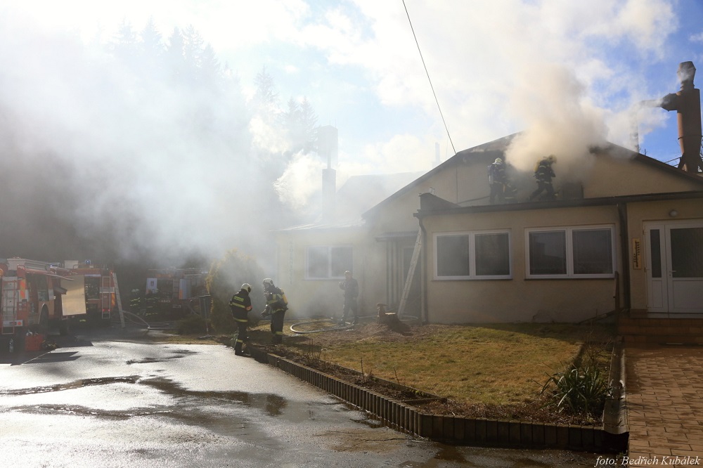 Oznamovatel na tísňovou linku nahlašoval černý kouř linoucí se ze střechy. K požáru vyjely osádky cisteren a výškové techniky profesionálních hasičů ze stanic Prachatice a Vimperk, jako posilové jednotky byli svoláni dobrovolní hasiči obcí Čkyně, Vlachovo Březí a Vacov.