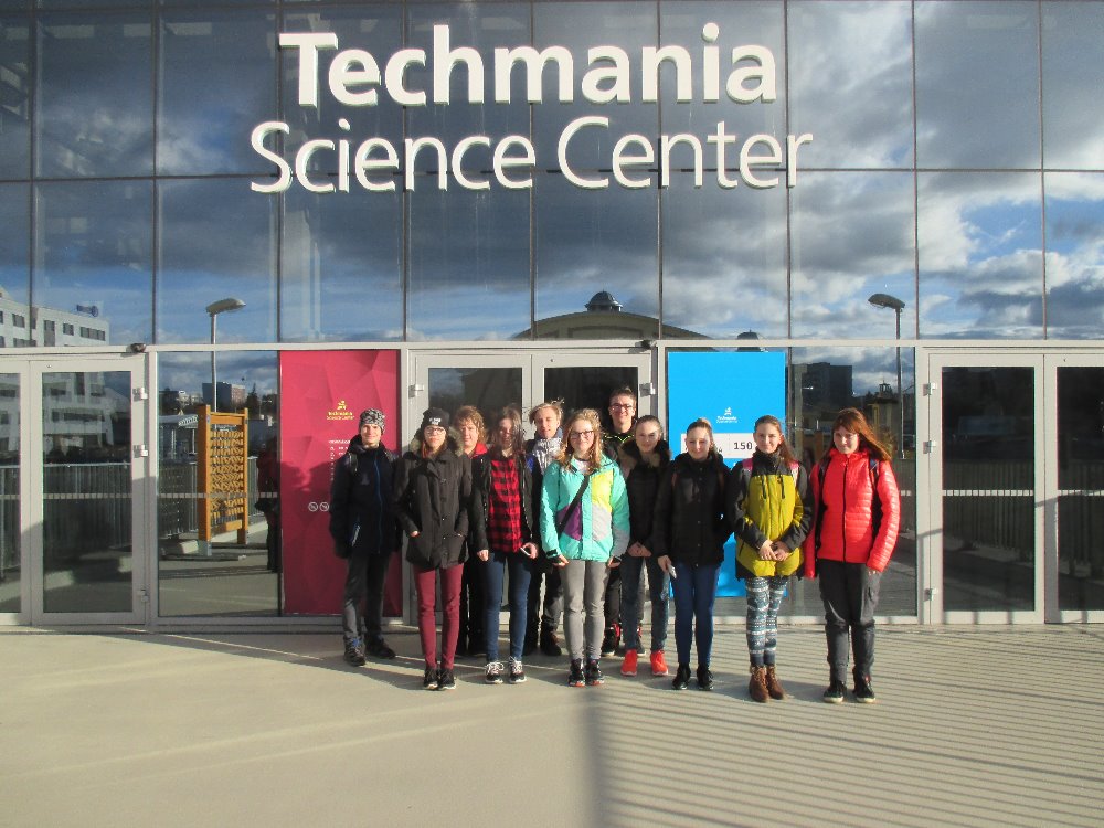 Díky projektu MatemaTech (program Interreg) se mohlo jedenáct žáků z 9. B vypravit do Techmania Science Centra v Plzni. Ani pět hodin nestačilo na dokonalé prozkoumání všech interaktivních expozic, které v Techmanii jsou. Žáci si měli možnost otestovat střílení na prvočísla, jízdu na kole podle grafu, chůzi po nakloněné rovině, zmrazení svého stínu a mnoho dalších aktivit. Velký zájem také projevili o gyroskop. Někteří našli i dost odvahy k tomu, aby toto zařízení vyzkoušeli. Show “ Van de Graaffův generátor“ nám předvedla účinky i na našich dívkách, které dobrovolně stály modelem. Toho, koho nezaujal film Musica – hudba, vesmír a matematika, nadchla alespoň křesla – tedy spíše lehátka – neboť film byl promítán do kopule planetária.