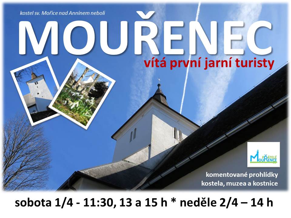 Kostel sv. Mořice na Mouřenci – 1. dubna prohlídky v 11:30 h, 13 a 15 h, v neděli 2. dubna – prohlídka ve 14 h, během dalších víkendů dle domluvy na tel. 607118846