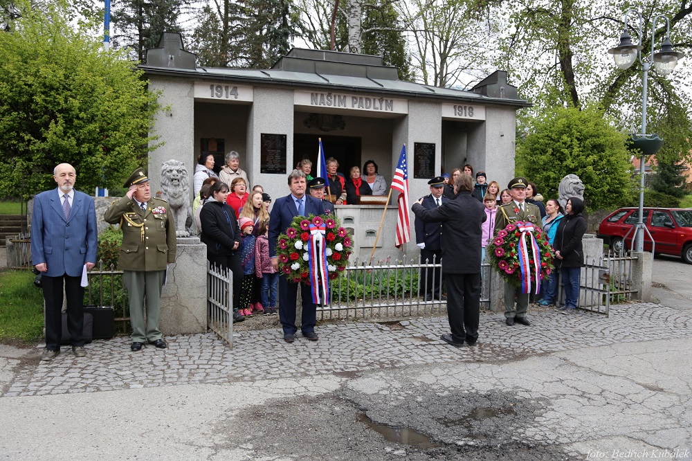 Zdravice na setkání přednesli: místostarosta obce Čkyně Jaromír Kainc; podplukovník Vojtěch Plesník, předseda Sdružení válečných veteránů Jihočeského kraje. Za sdružení zde byl i další veterán zahraničních operací – major Zdeněk Kolář. Položení věnce doprovodily hymnou zpěvačky se sbormistrem Jaroslavem Fafejtou.