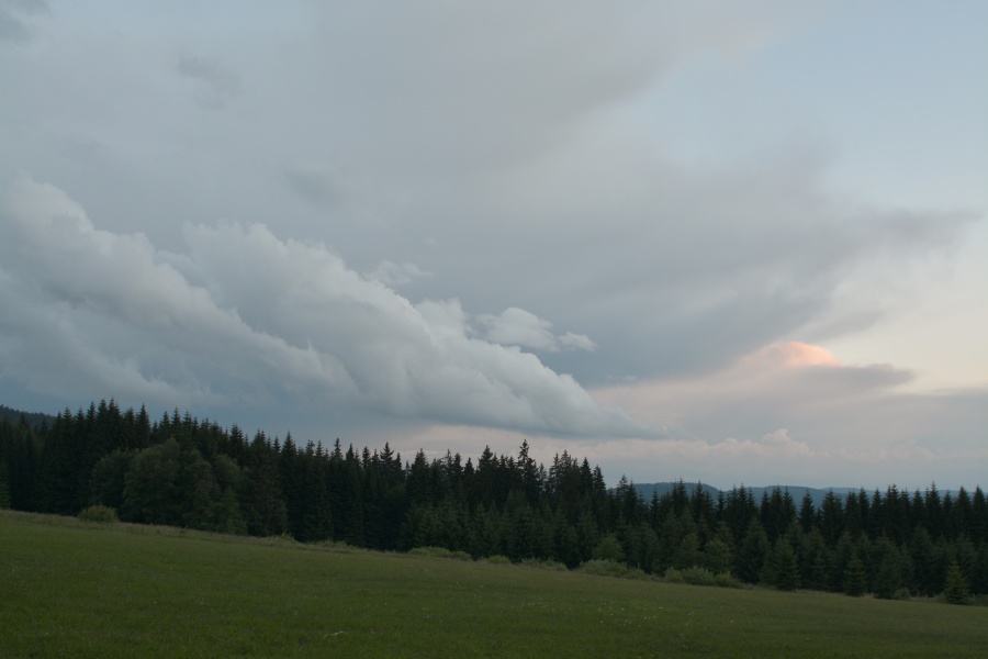 … ale odpolední bouřky se každopádně od Alp uhnuly z našeho pohledu směrem jihovýchodním, takže z večerního Boubína bylo možno za devatenáctistupňové teploty pozorovat už jen oblačné pozůstatky, …