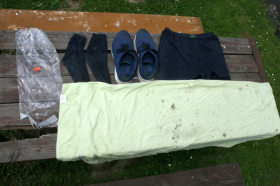 Policisté se dostavili na místo nálezu věcí a zaevidovali: jeden pár obuvi modré barvy, jeden pár ponožek černé barvy, zelený ručník, pánské trenýrky a igelitový sáček s cenovkou 139 Kč.