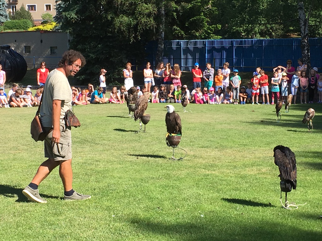 V úterý 13. června se žáci ZŠ Smetanova zúčastnili na vimperském fotbalovém hřišti přehlídky nejrůznějších dravců. Společnost ZAYFERUS, která se zaměřuje na ochranu a prezentaci těchto ptáků již 25 let, představila opravdu mnoho zajímavých zástupců. K vidění bylo mnoho sokolů, orlů, supů i dalších zajímavých dravců. Po krátkém představení všech druhů následovaly ukázky lovu na falešnou kořist. Někteří žáci naší školy si dokonce mohli některé dravé ptáky přivolat na ruku. Díky krásnému počasí a programu, který měl opravdu spád, byla akce velmi vydařená.