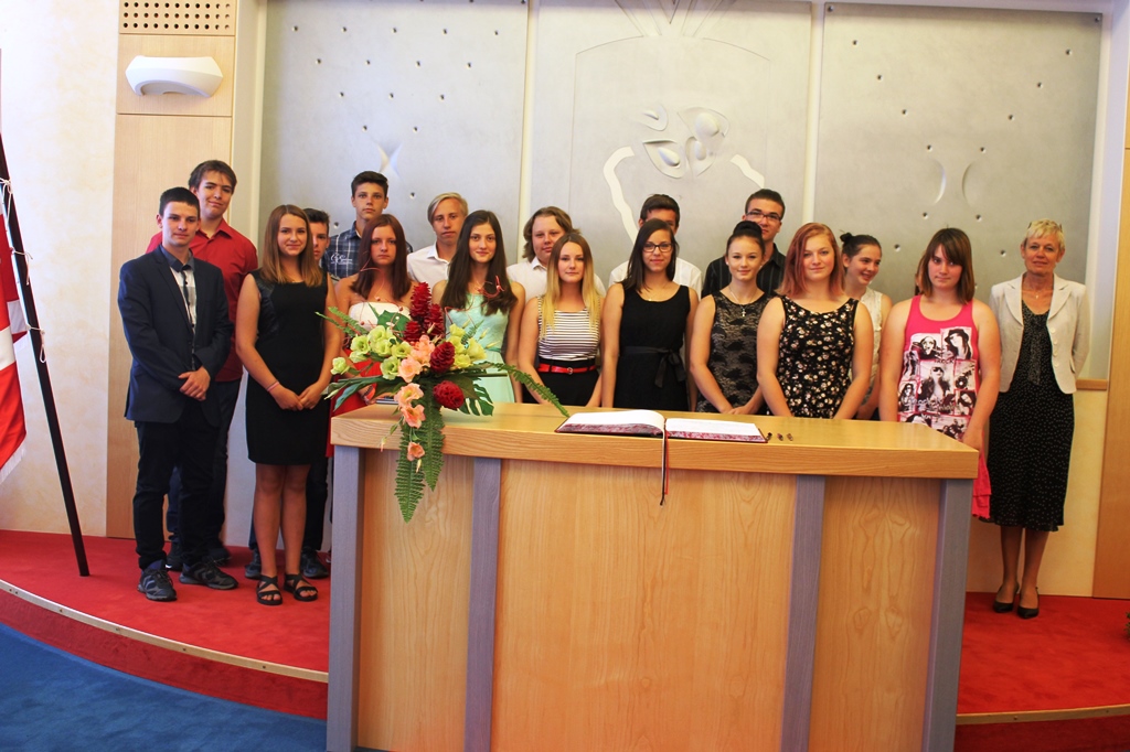 Poslední školní den si žáci devátých tříd přišli pro svá závěrečná vysvědčení do slavnostních prostor obřadní síně městské radnice. Za přítomnosti ředitele školy pana Mgr. Vladana Pokorného obdrželi z rukou starosty města pana Mgr. Pavla Dvořáka a třídních učitelek Mgr. Jany Doležalové a Mgr. Jaroslavy Kramlové, kromě vysvědčení, rovněž pamětní listy a upomínkové předměty, které jim budou připomínat roky strávené ve školních lavicích základní školy.