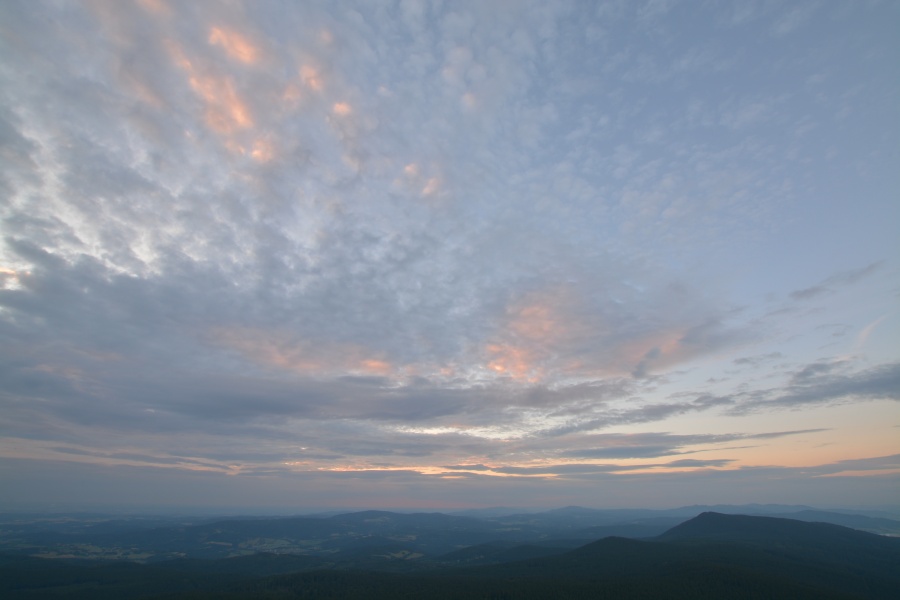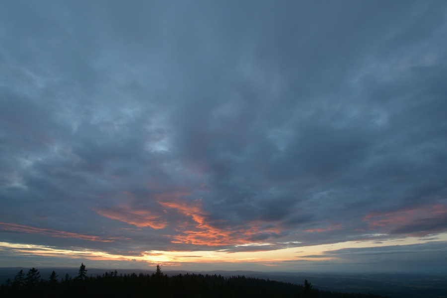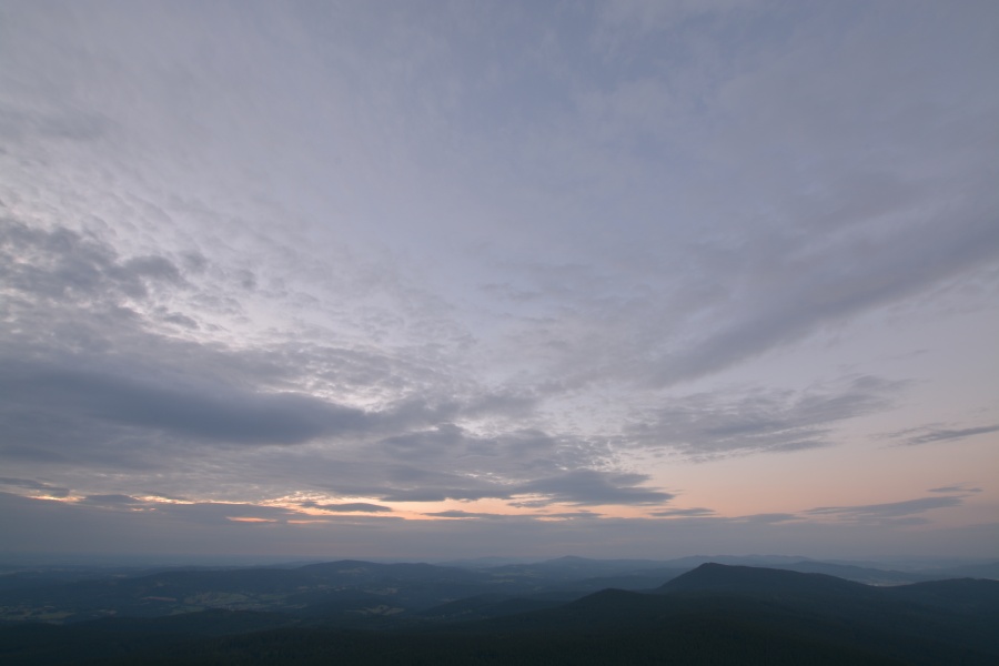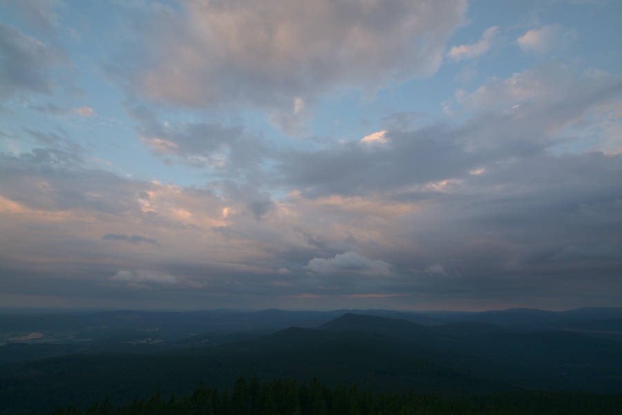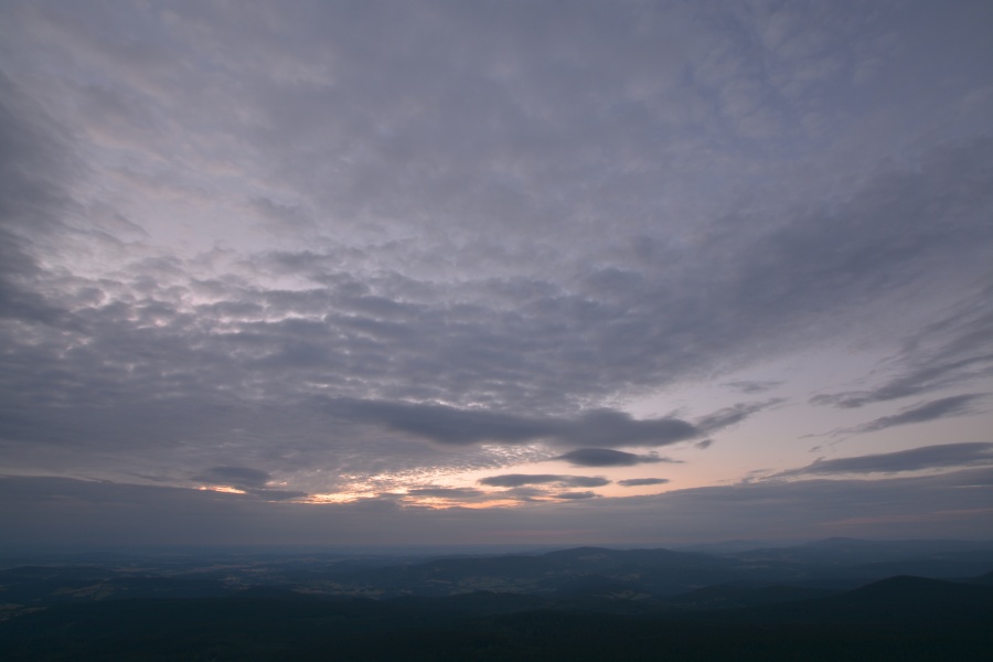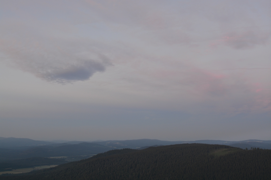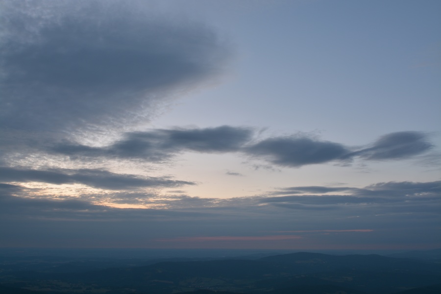 Snímek pořízený těsně před odchodem z rozhledny dělí od prvního pětačtyřicet minut – a zatím ani paprsek. Zdá se, že navzdory předpovídanému letnímu oteplování budeme přinejmenším dnešní dopoledne vnímat jako poněkud problematické.