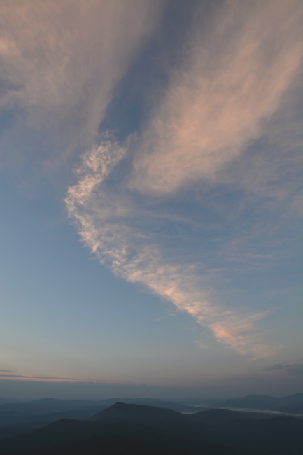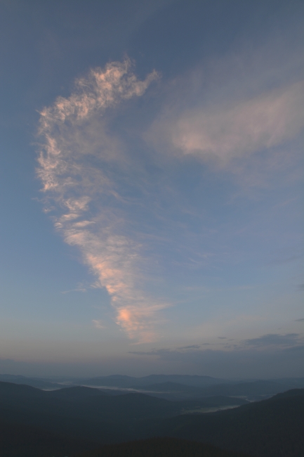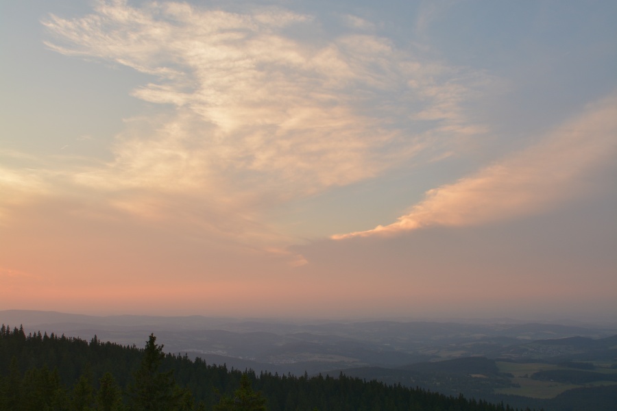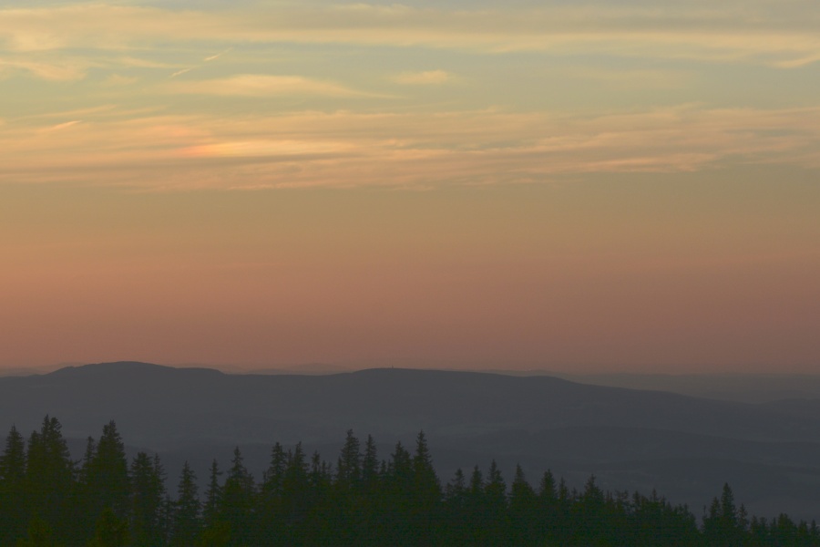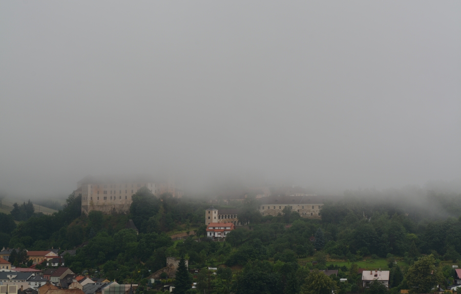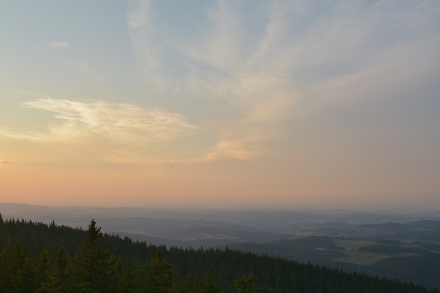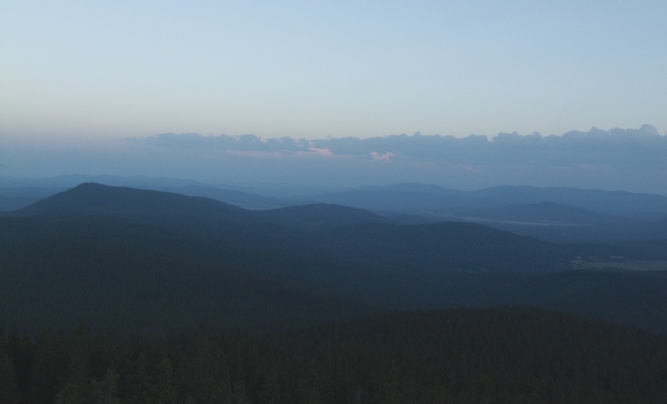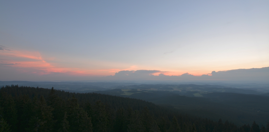 Snímek pořízený těsně před odchodem z rozhledny dělí od prvního pětačtyřicet minut – a zatím ani paprsek. Zdá se, že navzdory předpovídanému letnímu oteplování budeme přinejmenším dnešní dopoledne vnímat jako poněkud problematické.