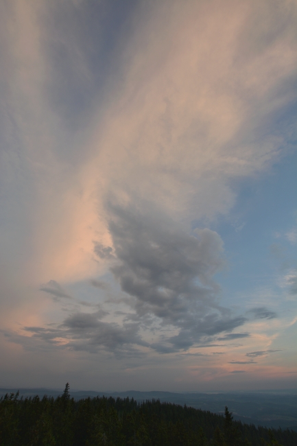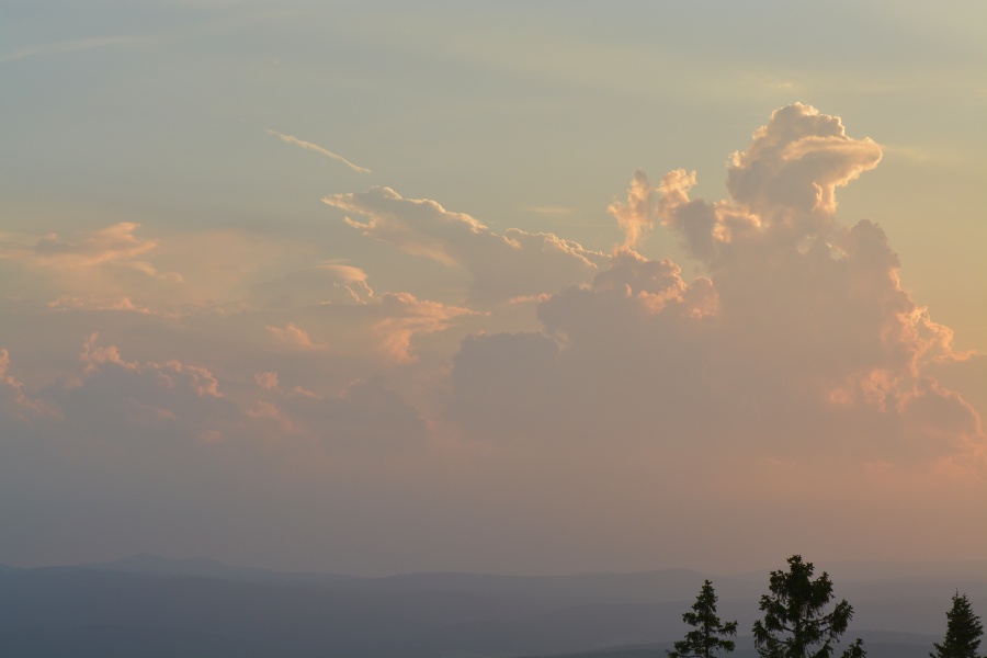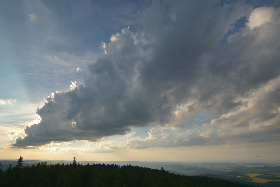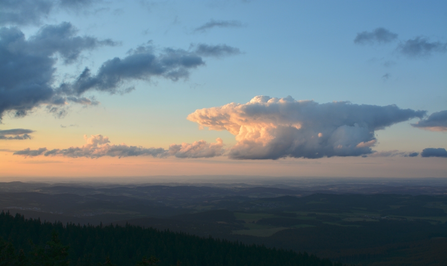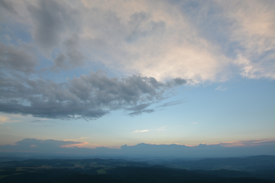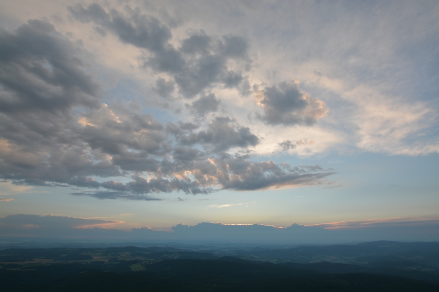 Nejvýraznějšími a prakticky jedinými lákadly v rámci večerních pohledů z Boubína byly cumulonimby, roztažené navíc svrchu do klasických bouřkových kovadlin. Tento krasavec se rozpínal severovýchodním směrem, …