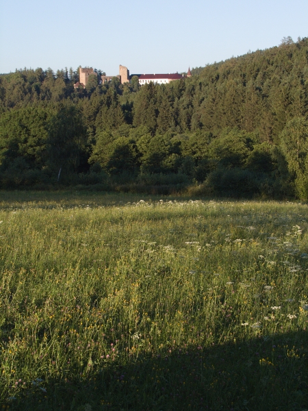 Ale možná právě proto náhle vidíme po delší době opět Přimdu, a to brilantně ostrou včetně hradu. Nacházíme se však v úzkém obzorovém pásu, osvětleném sestupujícím sluníčkem, …