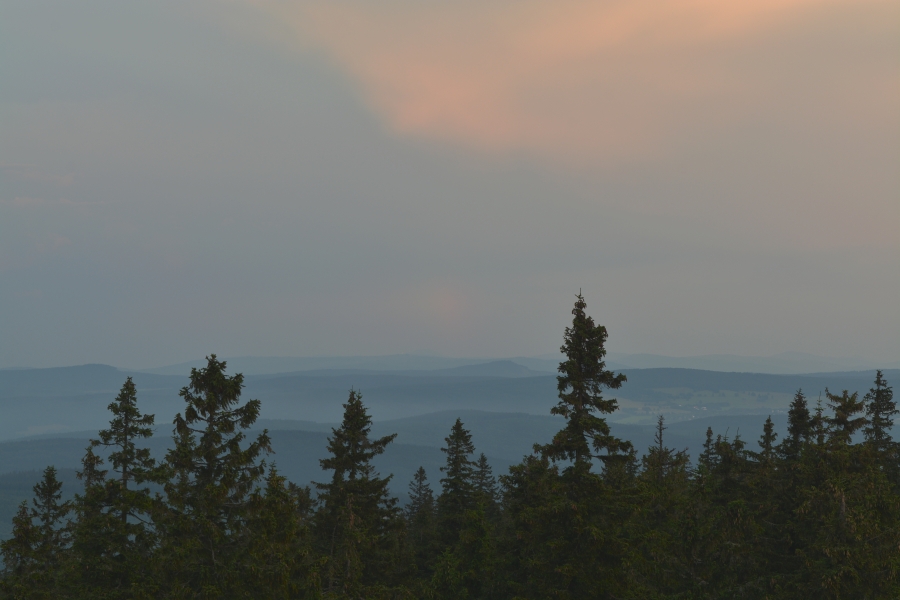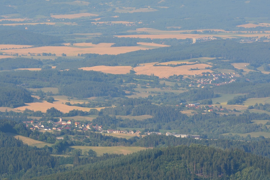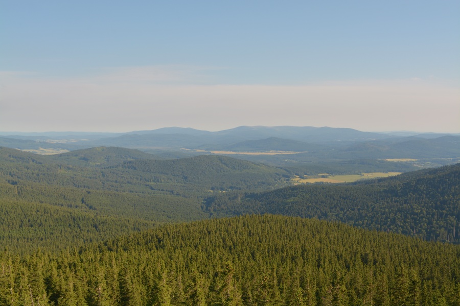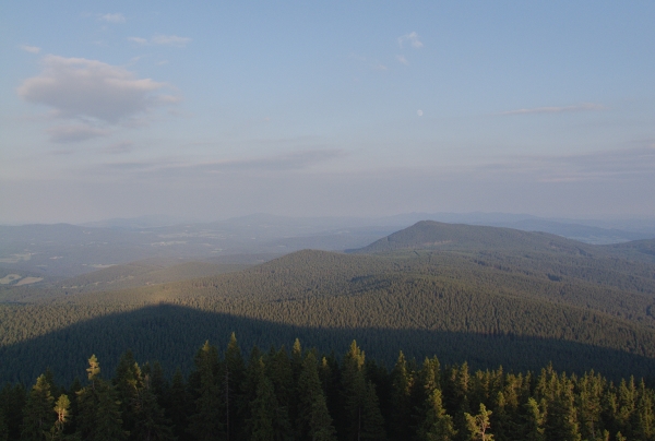 Ze Slavkovského lesa už je jen skok do Krušných hor – tedy další z Boubína viditelné lokality. V dnešním vedru zajisté nebylo možno očekávat, že snad z Klínovce bude, nadto v danou denní dobu, k zahlédnutí Šumava, ale když už člověk jednou váží cestu na protější konec republiky, neměl by asi tohle místo vynechat. Nu, Boubín to tedy není (a tím se jistě nemyslí jen zdejší stoosmnáctimetrová nadmořská ztráta – Klínovec dosahuje 1244 m) – jeden si tu připadá principielně spíše tak trochu jako na Zadově, …