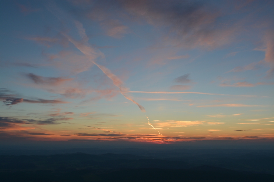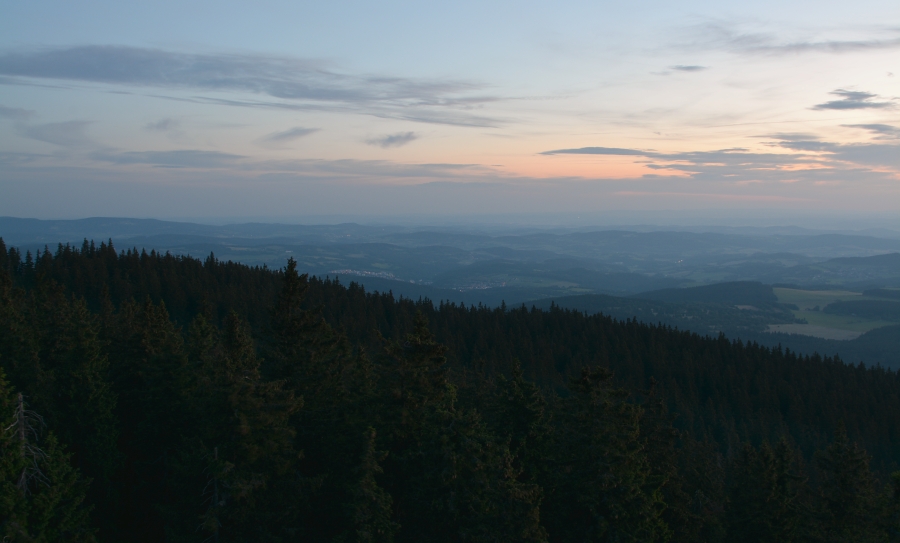 Ale, málo platno, oko hledá nade vším tím civilizačním balastem především rodnou Šumavu, již by za ideálních podmínek zahlédlo ve stošedesátikilometrové vzdálenosti na obzoru zhruba pod jediným bílým obláčkem, který snad zásahem vyšší moci připlul právě na to místo jako pomyslný orientační bod.