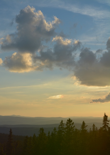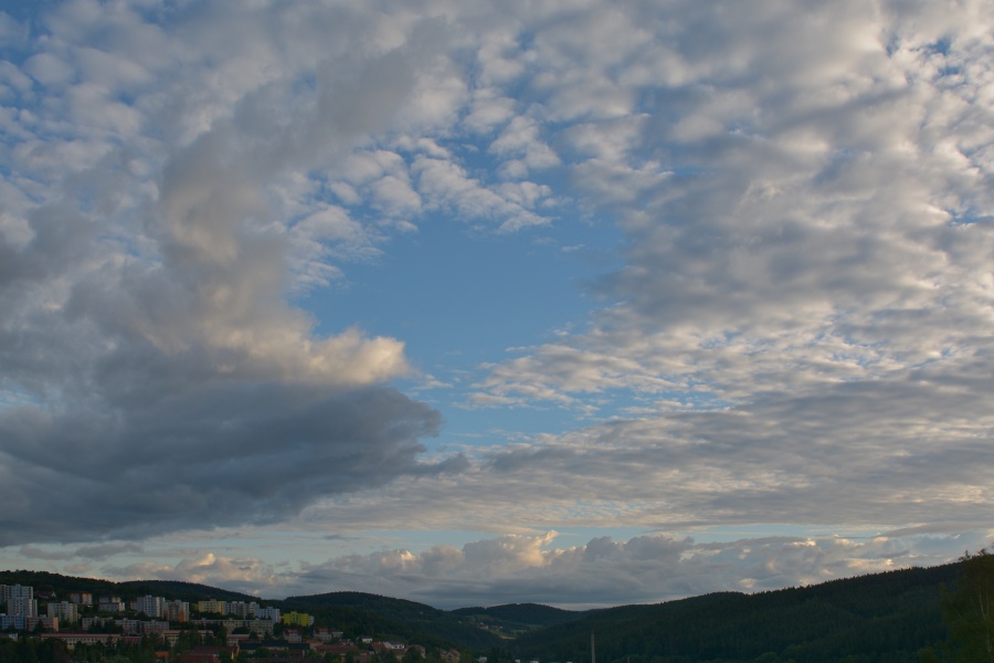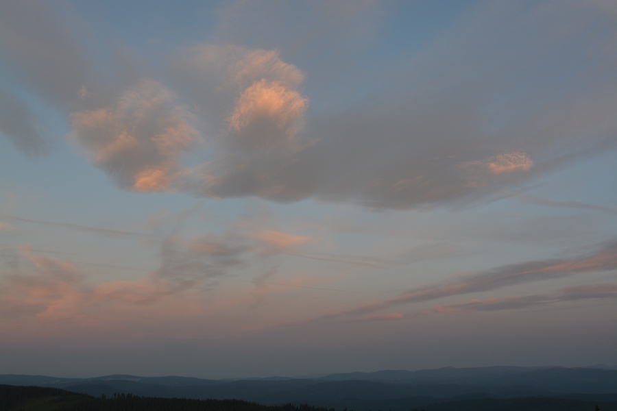 … ale protější směr přece jen sliboval zážitky zcela jiného rázu. Zprvu nenápadné mráčky si zdánlivě jen nesměle užívaly posledních paprsků zapadajícího sluníčka, …