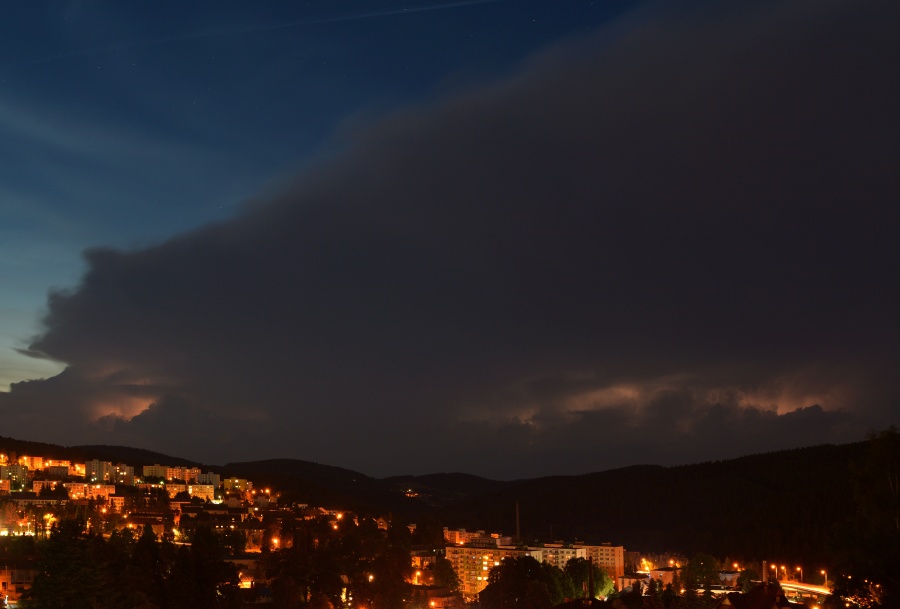 … jihozápadní obloha se co chvíli rozhořela četnými blýskavicemi, svědčícími o tom, že kdesi nad Alpami i blíže k našim hranicím se odehrává zcela jiné představení.