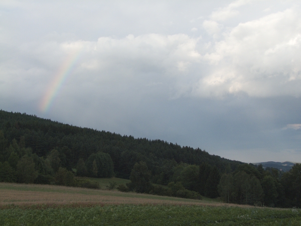 … ale nedalo si zabránit v pokusech o stvoření půvabné duhy. Její levý konec vyrůstal z lesů poblíže Záblatí, …