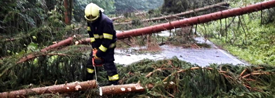 Od prvního srpnového dne, kdy horko vystřídaly bouřky a přívalové srážky, hasiči vyměnili proudnice s vodou za motorové pily a průběžně likvidují popadané stromy a větve.