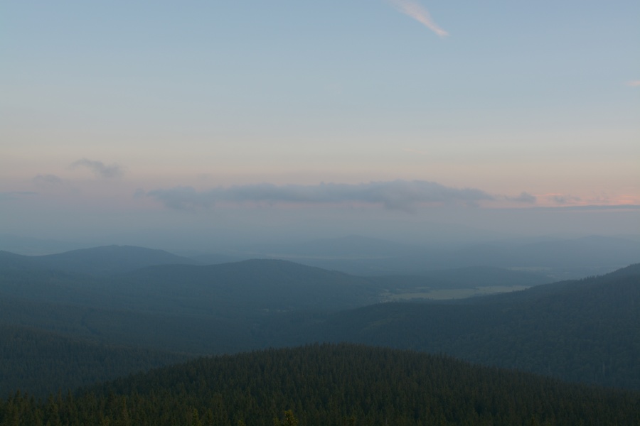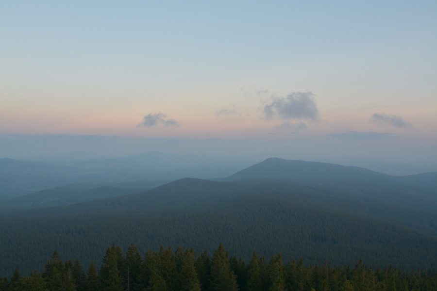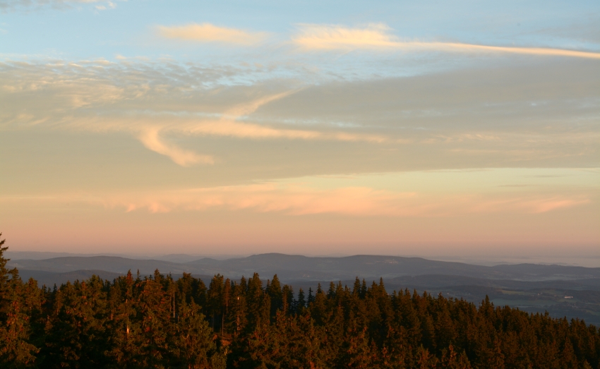 … a sluníčko v poklidu probarvilo jihozápadní obzorový pás, dotýkající se mimo jiné vrcholu Luzného …