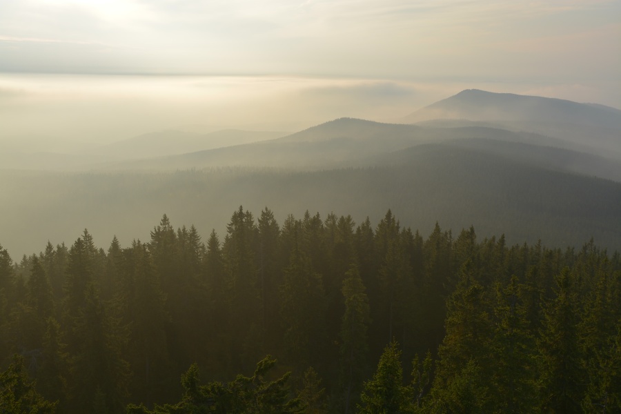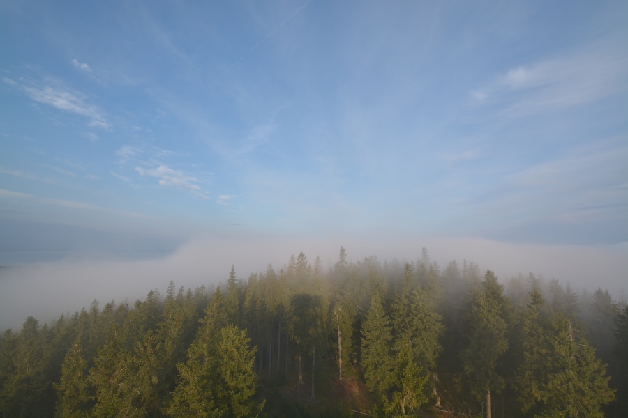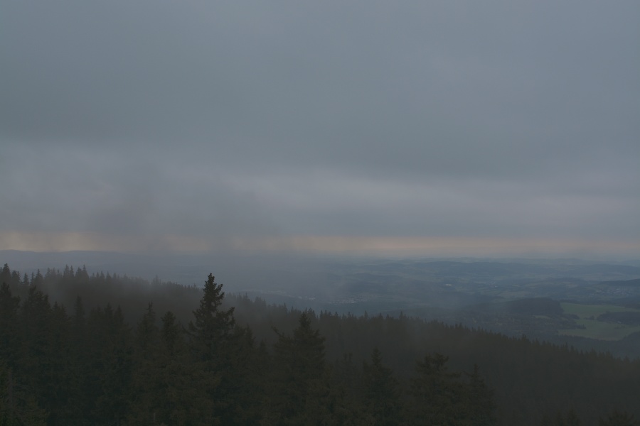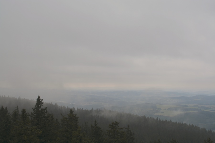 Zato náhlý přísun čerstvé mlhy od západu do špiček boubínských smrčin se jeví velmi slibným.
